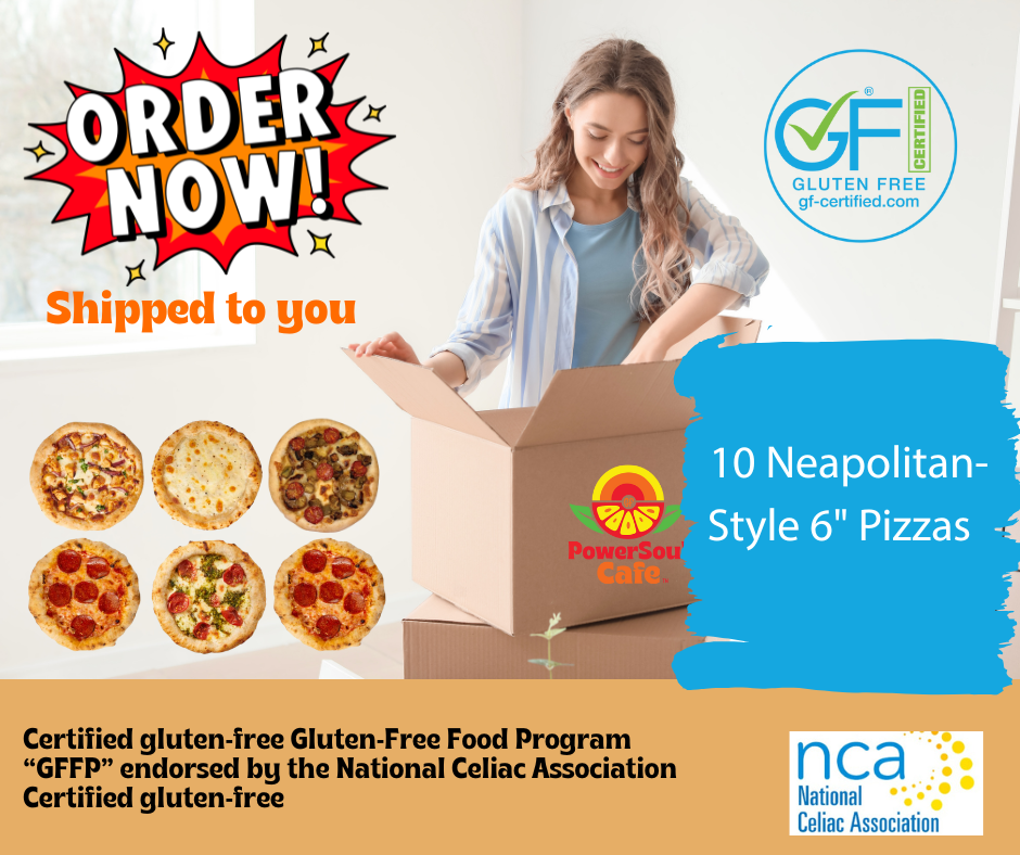 10 Neapolitan-Style 6” Pizzas – made from scratch with ingredients imported from Italy, grown without pesticides, and topped with fresh mozzarella and smoked provolone from small European farms — some with as few as ten grass-fed cows. Our tomatoes are organically grown in volcanic soil and canned within hours of harvest for that authentic Italian flavor.
